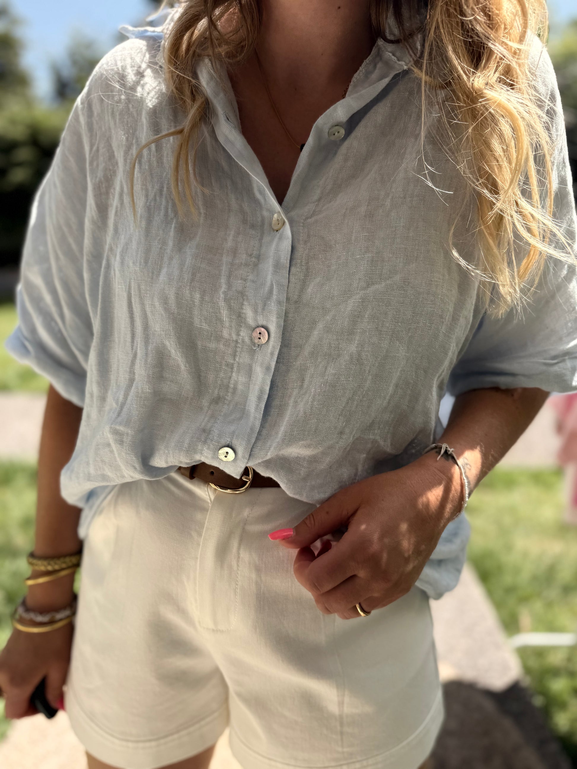Chemise en lin bleue