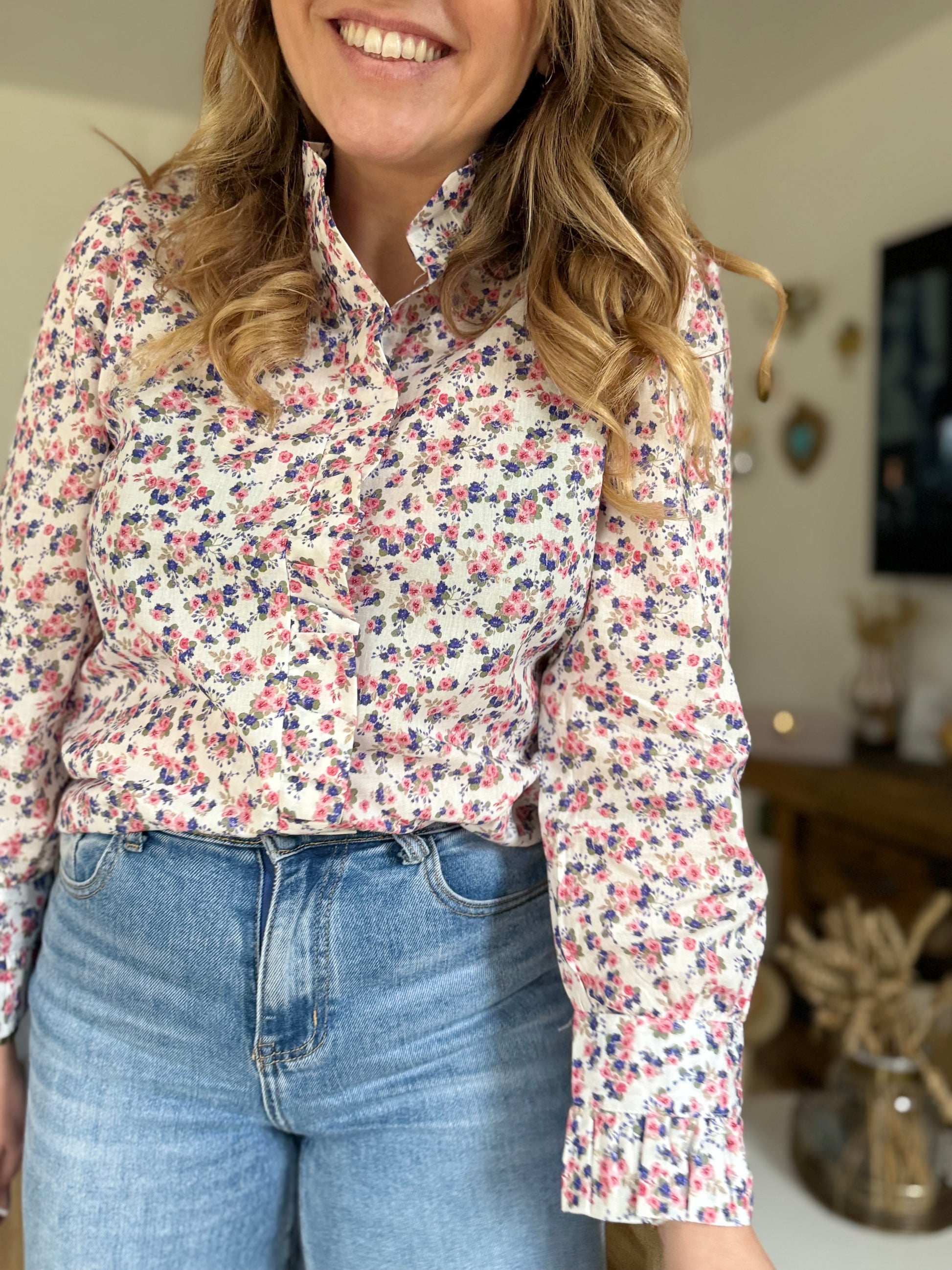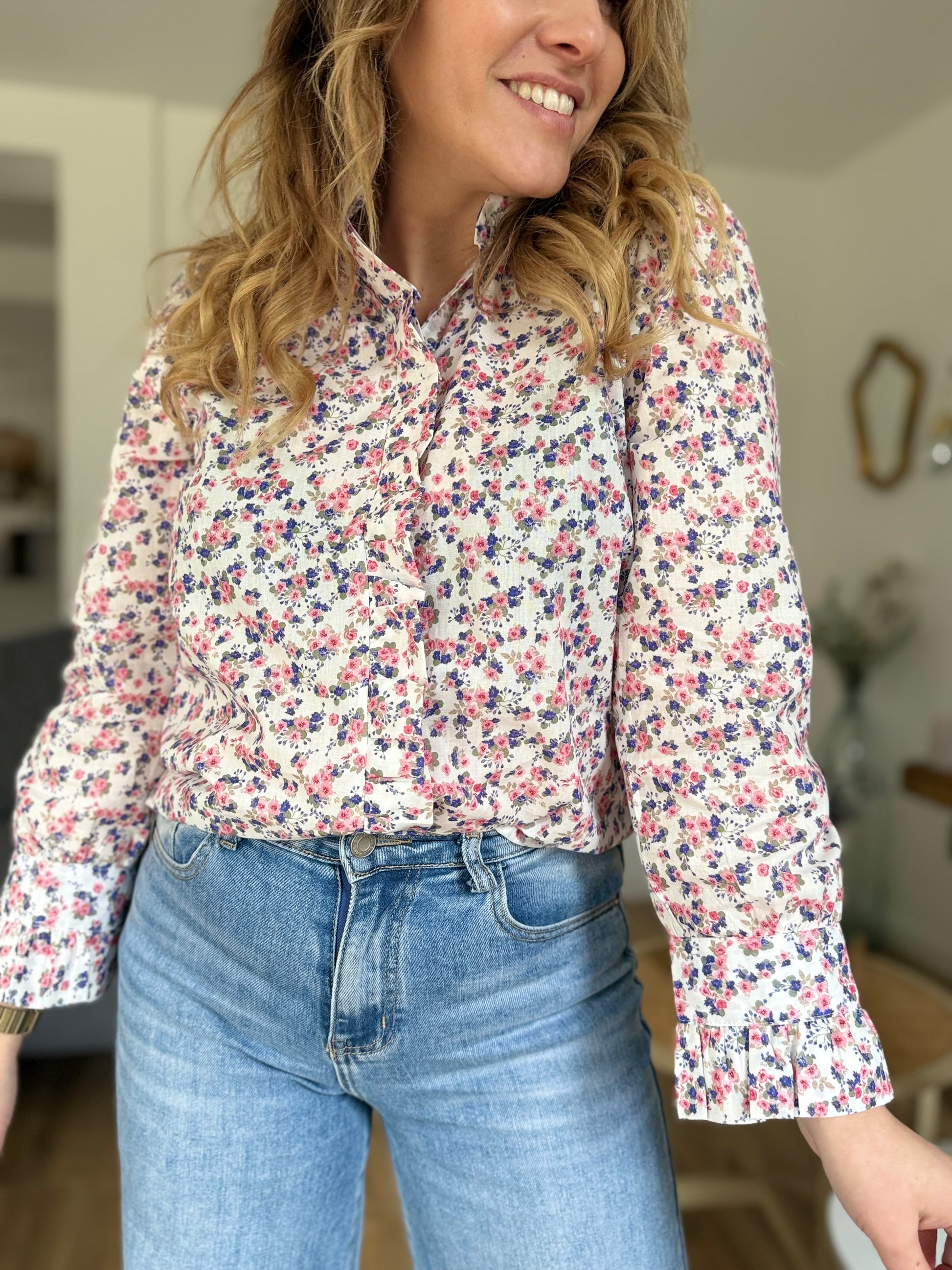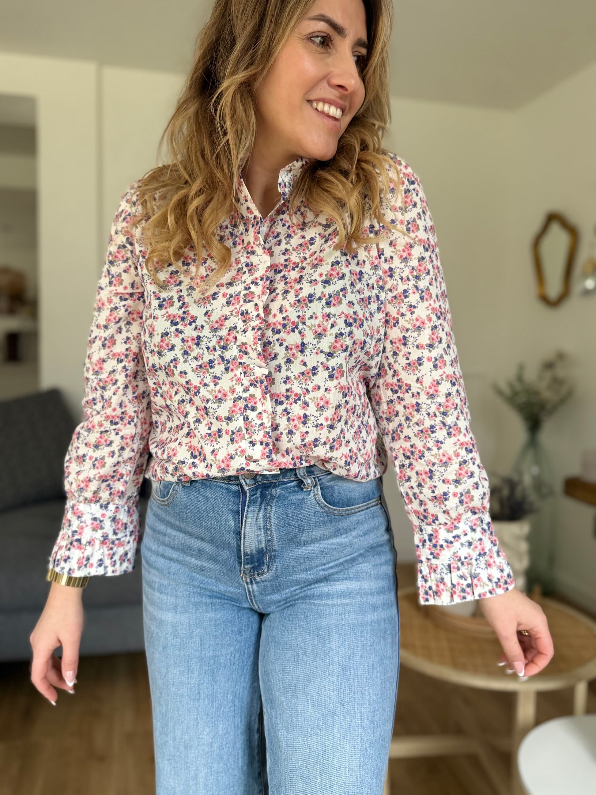 • Boutonnière tout le long avec volant