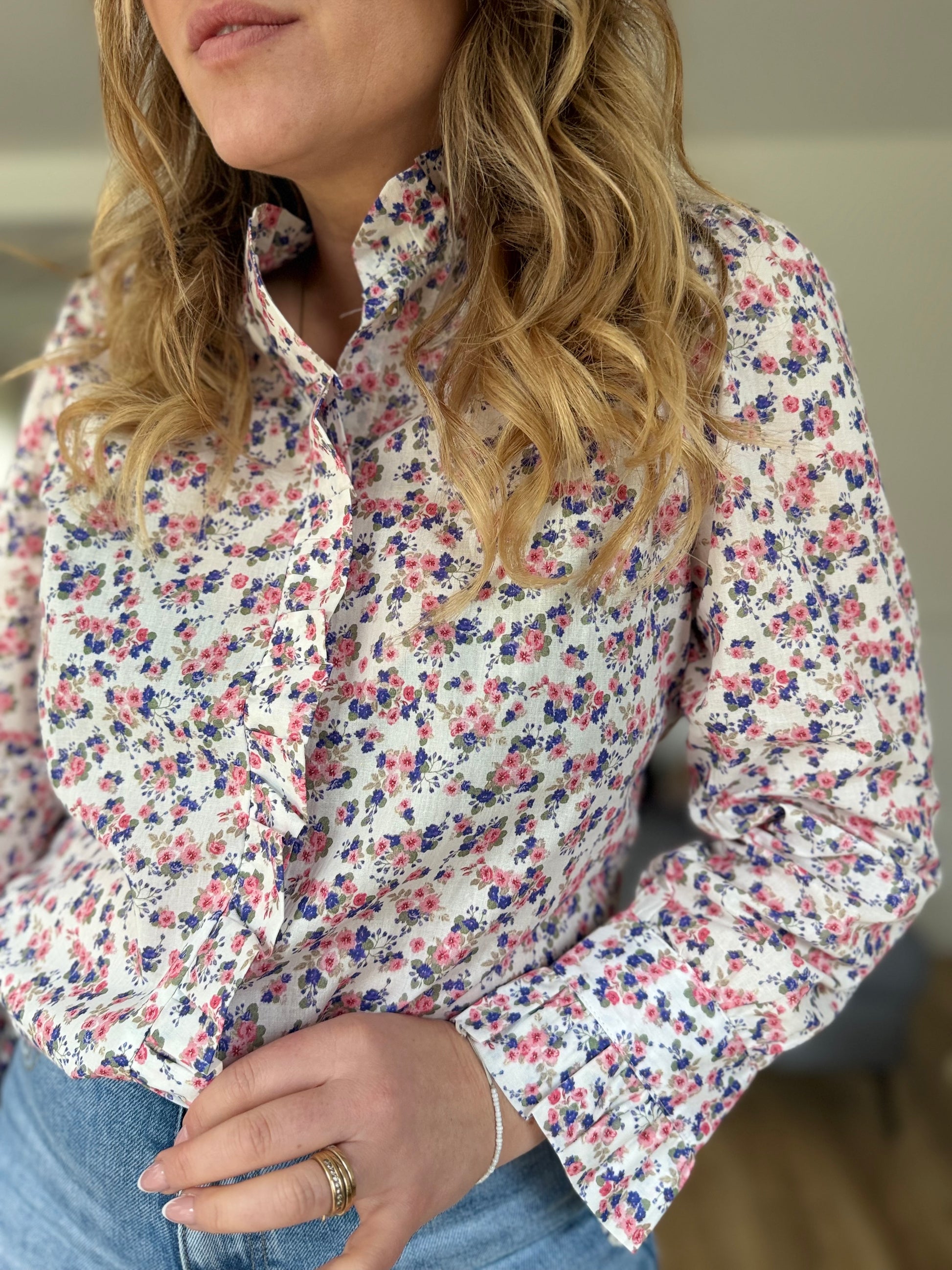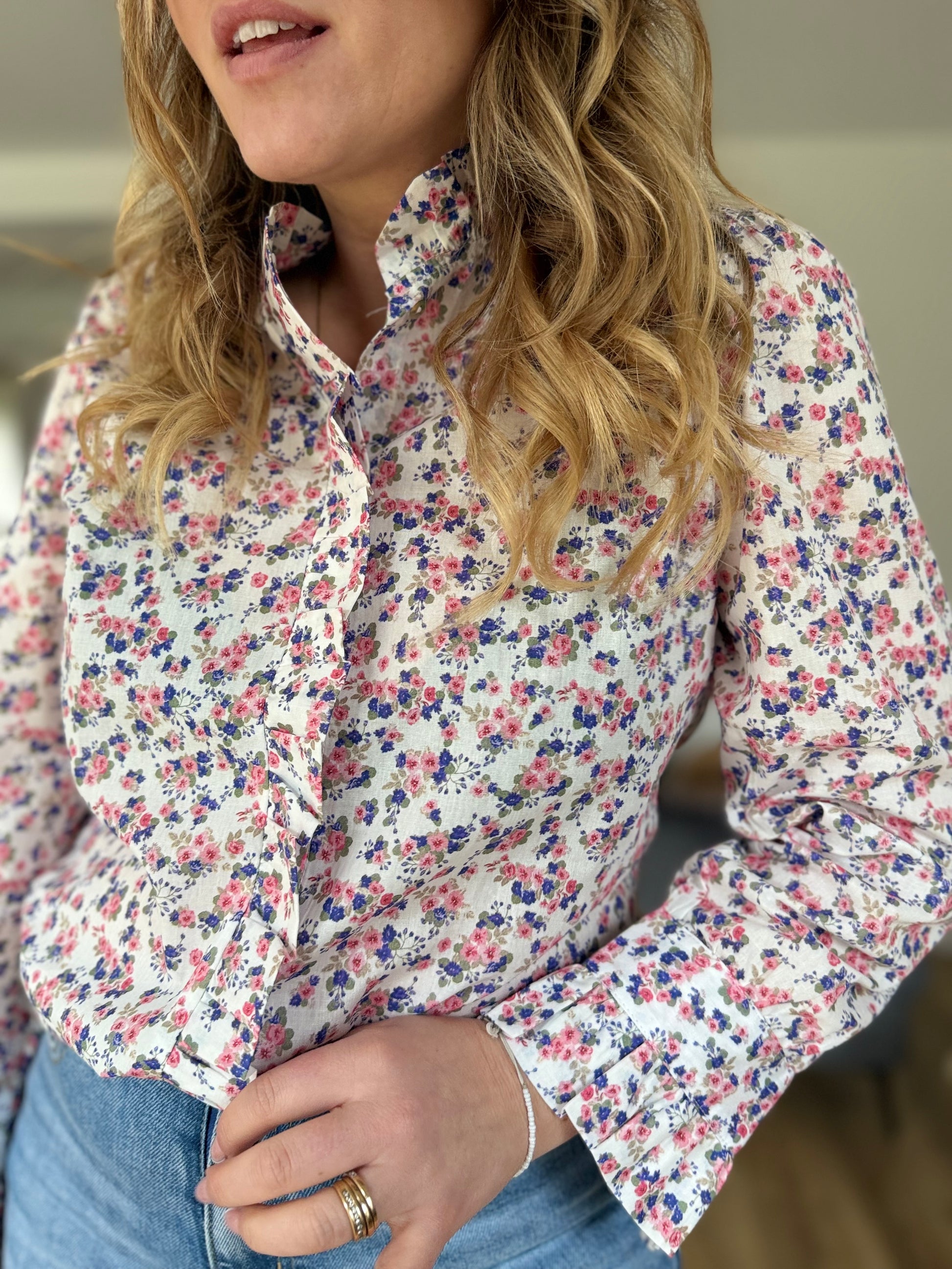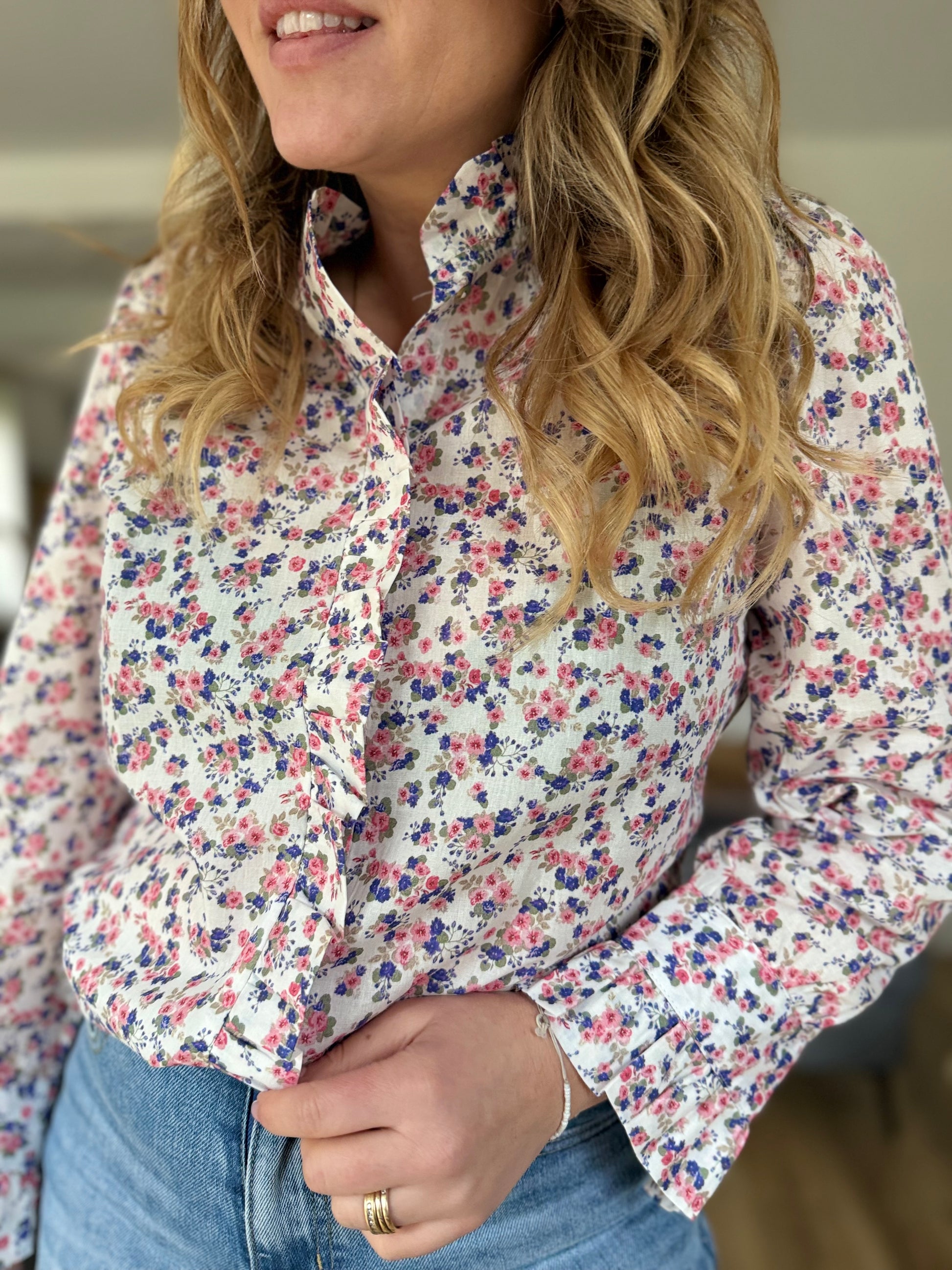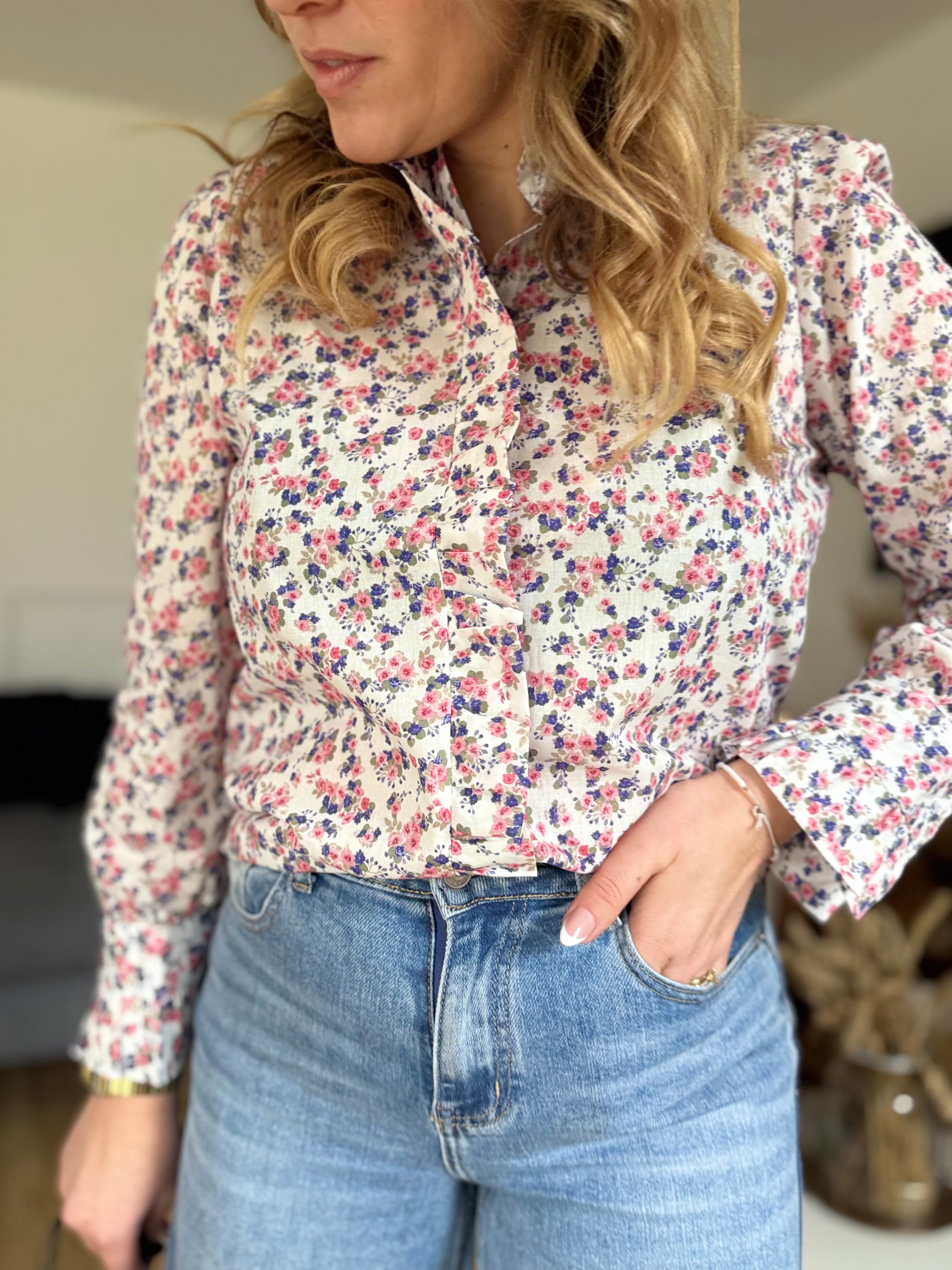 • Boutonnière tout le long avec volant