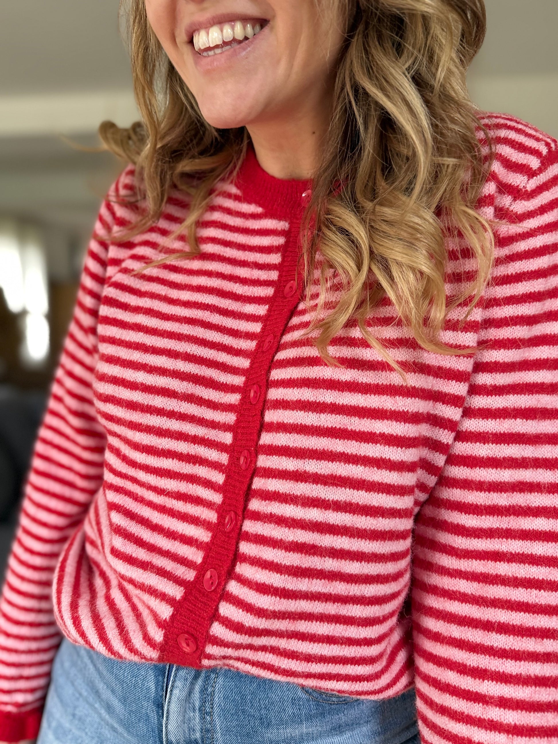 Gilet rayure rouge et rose